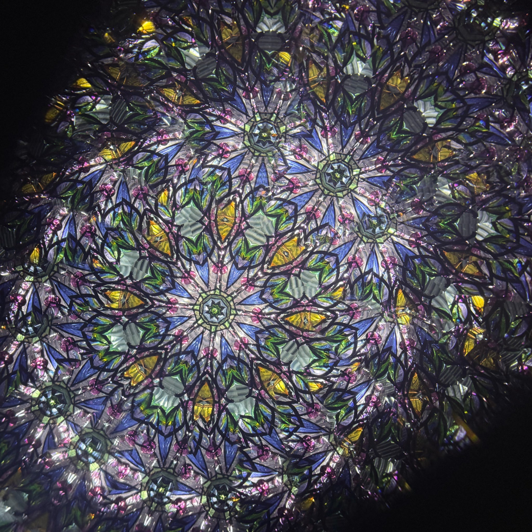 色彩あふれるガラスを使い、色同士が幾重に重なり合った時に生まれる深みのある映像を意識して制作しています。